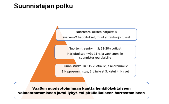 -tiimi muodostuu Vaasan Suunnistajien nuorisovastaavasta, valmennusvastaavasta ja suunnistuskouluryhmien vastaavista